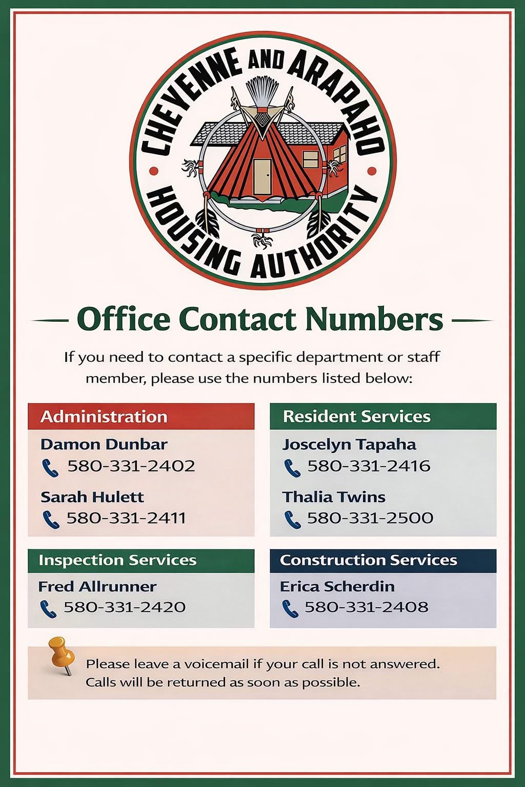 The Cheyenne and Arapaho Housing Authority Promotes Culture of family first with opportunities to foster education in safe, sanitary, and affordable housing.